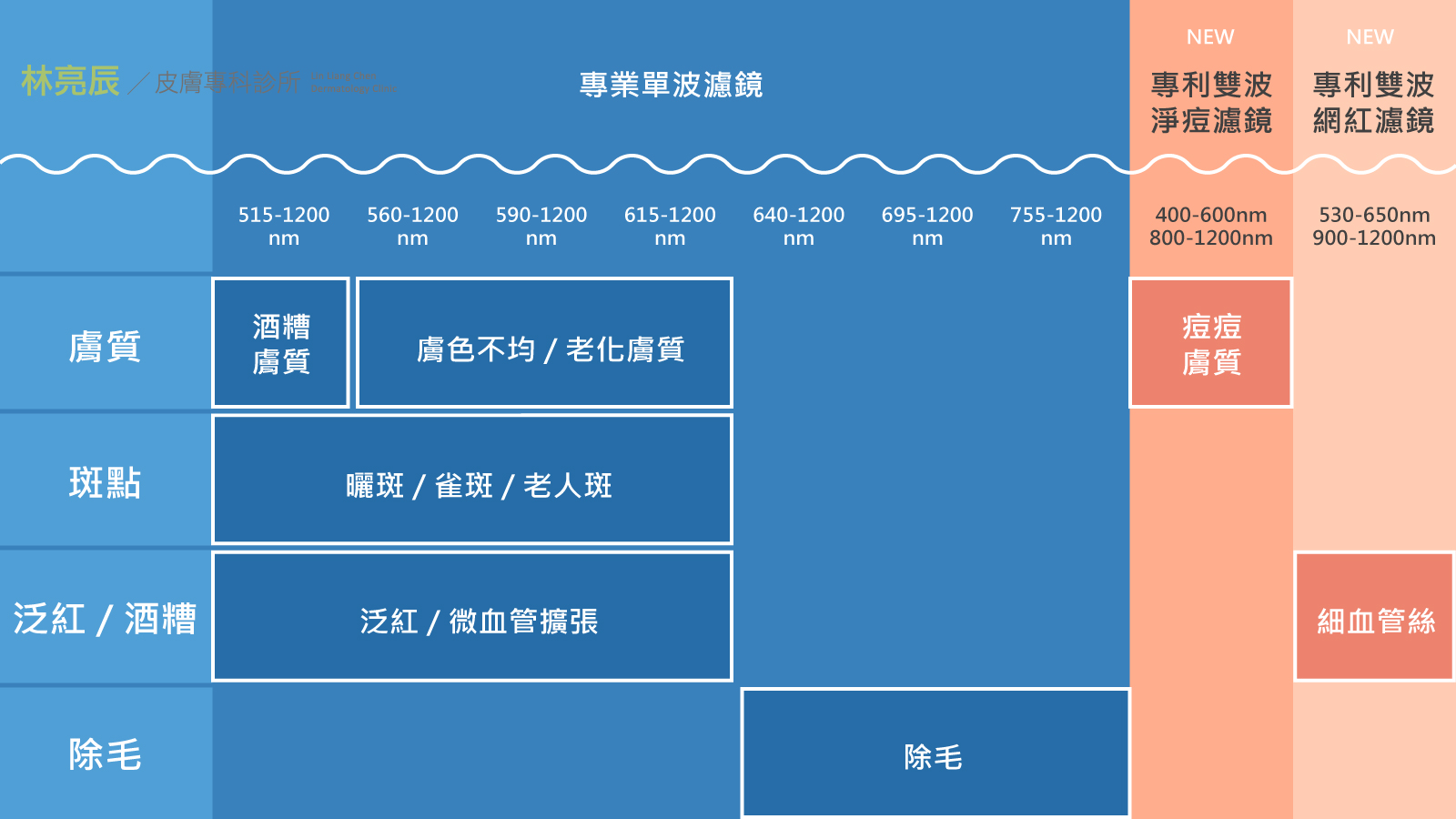 更令人驚喜的是,彩衝光的多種濾片,可以在同次治療感善多種皮膚問題,如斑點、暗沉、毛孔、粗糙等等,進一步的提升膚質。