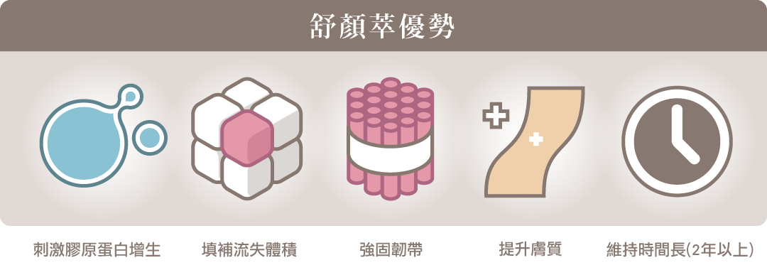 因3D聚左旋乳酸( Sculptra 舒顏萃)和過去以往經常使用的玻尿酸是完全不同的概念。玻尿酸是單純地填充注射物,針對填補凹陷、輪廓塑型效果佳,效果立即,屬於「缺多少、凹多少,就補多少」的注射思維。