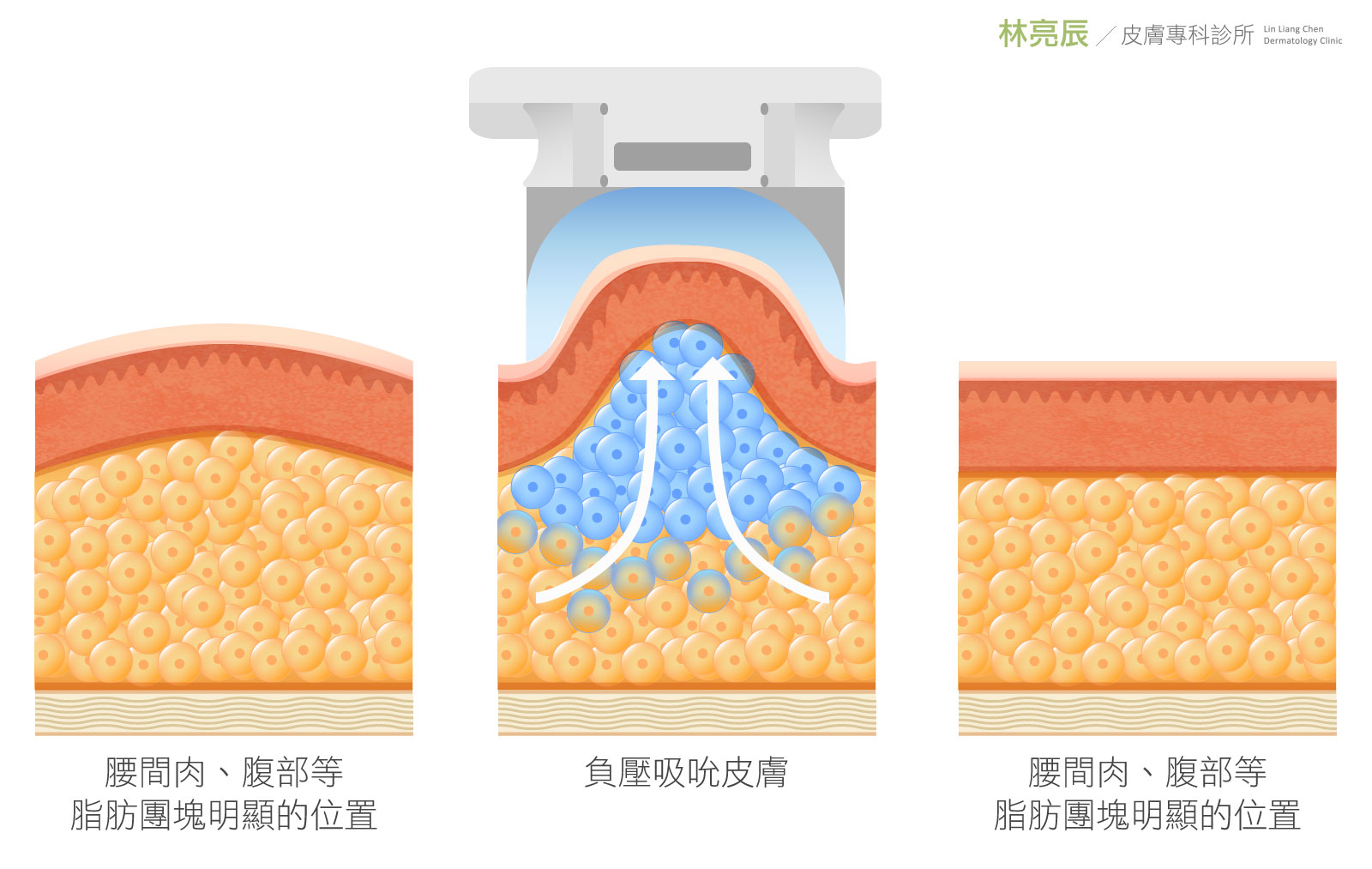 現在搭配林亮辰皮膚專科診所引進的CoolAdvantage新一代手握把,不僅提高治療過程的舒適度,還將治療時間從過去的60分鐘大幅縮短為35分鐘,而且新一代手握把有更大的吸附面積與更貼合肌膚的治療弧度,更加倍提升酷爾塑冷凍減脂的治療效率與精準度。不過,杯狀吸允式探頭需要施作在脂肪有一定厚度的部位,因此酷爾塑平冷凍減脂較適用於修飾局部脂肪團塊或順修身體線條,由於探頭的擺放位置和治療時間長短,都對術後效果影響甚大,建議選擇專精的治療團隊才能達到最佳減脂效果。