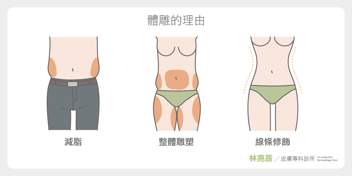 或許嘗試過各種方法、調整飲食、勤奮運動,依舊無法達到完美理想中的體態模樣,總是受困於那一寸肥肉、永遠無法套上那件夢寐以求的露背洋裝或緊身牛仔褲。非侵入式體雕療程的出現與在市場的持續創新、進展,讓每個人都能找到適合的選擇。每台儀器都有其優勢與特性,除了療程的選擇,醫療團隊的專業評估與規劃更能讓求診者有更滿意的理想成效,不必把體雕想成是疼痛、嚴肅、刻板的醫療行為,它就像是生活中犒賞自己的一種享受,有健身習慣的也可把其當成事半功倍的輔助,讓每一寸肌膚與曲線都更接近自己的期待!