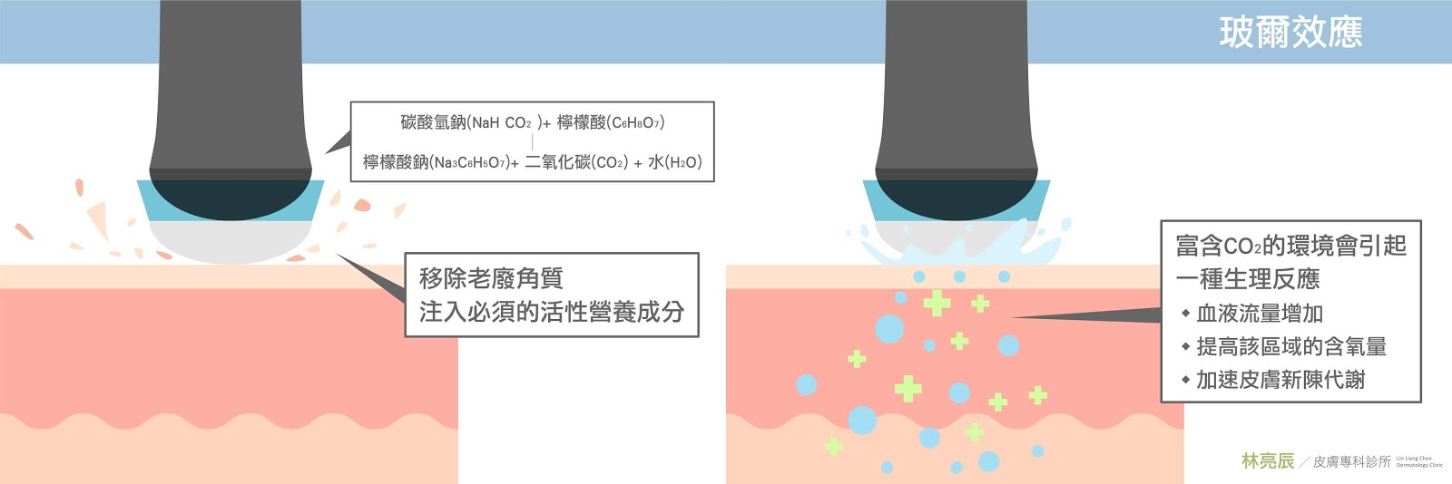 而活氧泡泡則是透過特殊的製程技術,將難以保存的抗氧化成分,完整地保存在乾燥膠囊中;再利用玻爾效應(Bohr Effect),製造充滿充滿二氧化碳的環境,當血液的二氧化碳濃度高時,紅血球就會自動釋出氧氣,提升細胞間含氧量,造成血液循環加速,肌膚細胞代謝旺盛;最後以潔奈音波,暫時性第在細胞間產生微通道,時性降低皮膚內層的密度,此時使抗氧化物、各種精華可順利地滲透肌膚深處,如保濕、抗老各種成分,確實補充各種水分、養分。