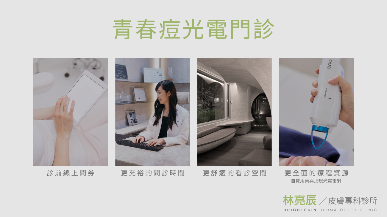 如果你的痘痘總是反反覆覆、試過多種方法仍不見好轉,或是希望能更有效率地縮短治療期,林亮辰皮膚專科特別設立的「青春痘光電門診」正是為此而生。
