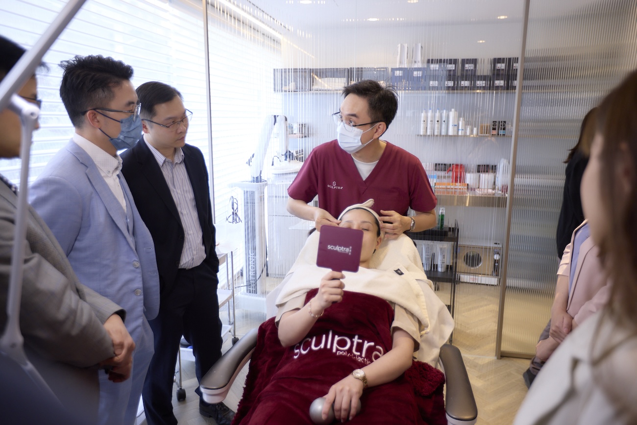 ▲林亮辰醫師於林亮辰皮膚專科診所Bri.概念館,與來自香港的醫師們,分享4D童妍針減齡三部曲的注射治療思維。