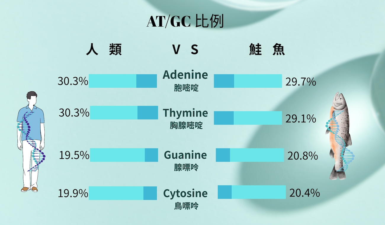 PDRN是從鮭魚精子中萃取出來的DNA片段,但它與人體DNA的鹼基排列相似度高達98%以上。這意味著,PDRN的基本組成,也就是A、T、G、C四種核苷酸的比例和排列方式M與人體細胞中的DNA極為接近。對人體而言,這樣的DNA片段就像自體材料一樣,能夠自然被辨識、吸收並進一步代謝利用,而不會被視為異物產生免疫反應。