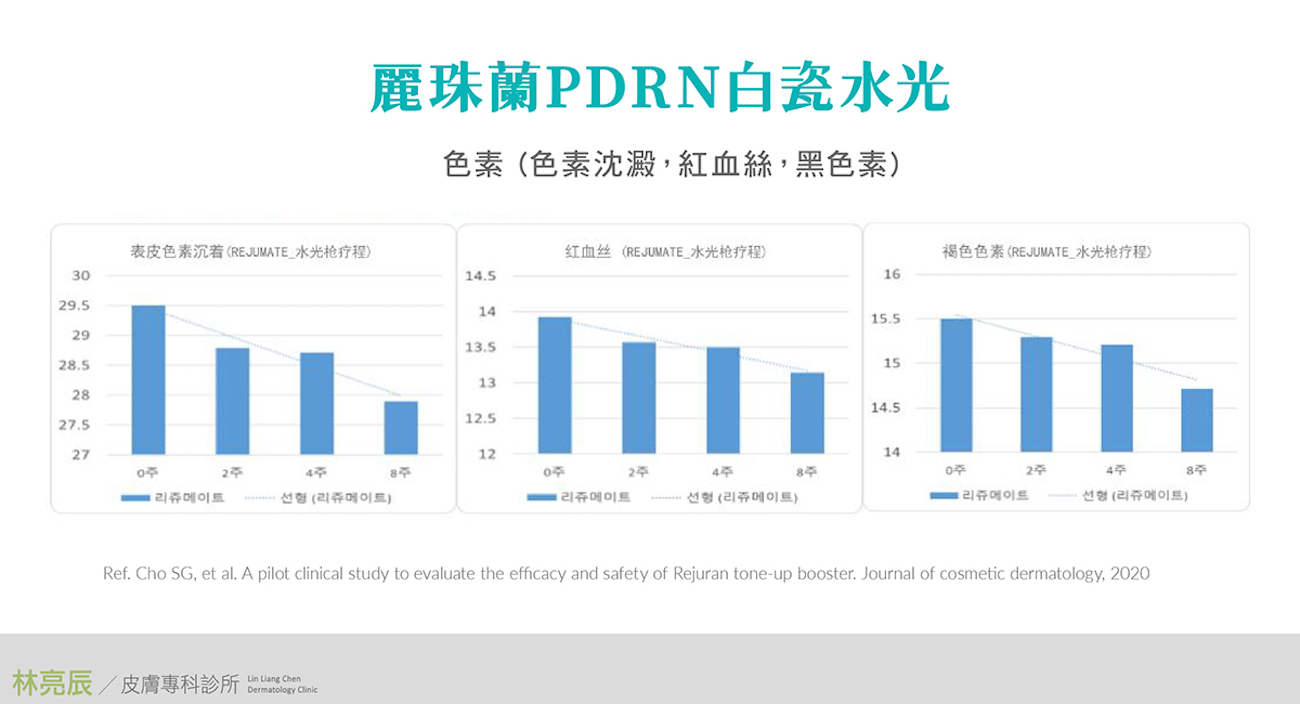 麗珠蘭白瓷水光系列,術後相關數據顯示,在色素沈澱、紅血絲等等表現,都有下降緩解的趨勢。