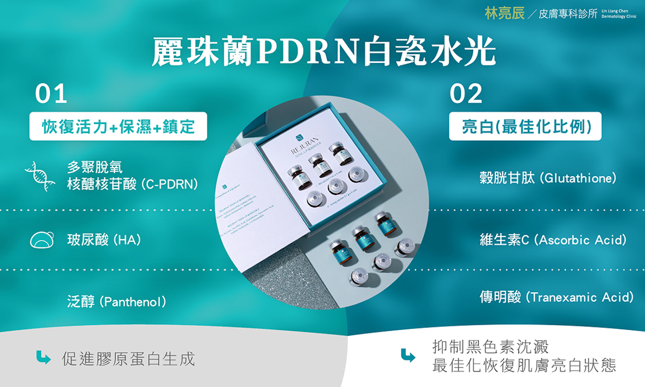 那要如何白回來?麗珠蘭PDRN Booster系列的白瓷水光,在我們的觀察,是真正淨白透亮,掃黑有感的療程之一。