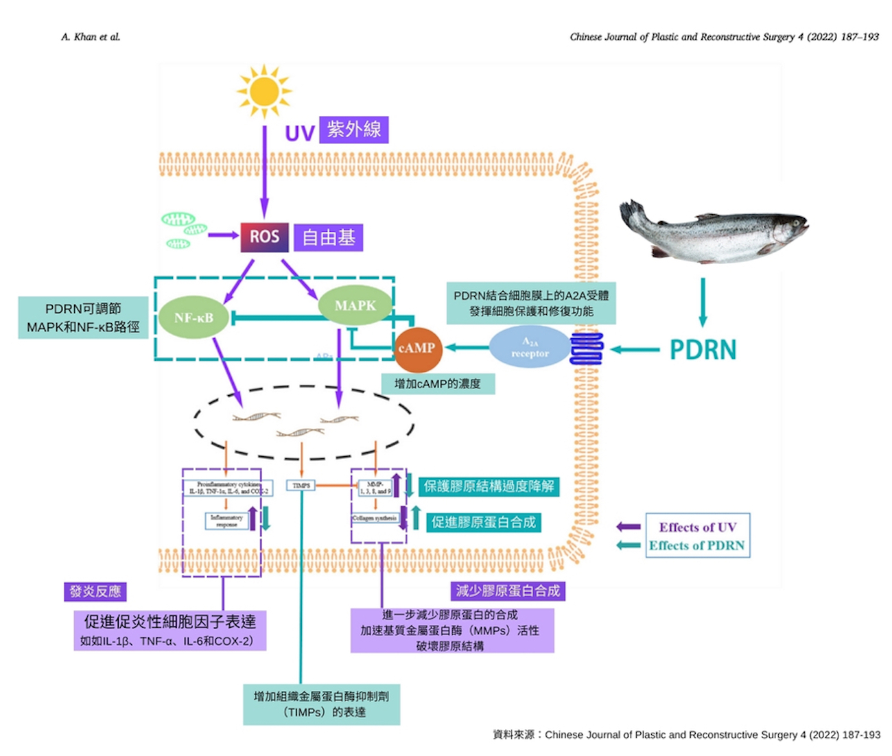 。當 PDRN 抑制這兩條路徑,能有效減少發炎訊號放大、降低肌膚發炎性物質的釋放、減緩術後紅腫、光        傷害後反黑等副作用。