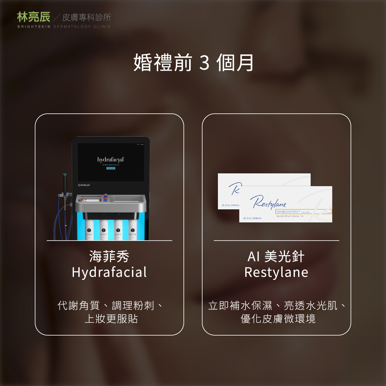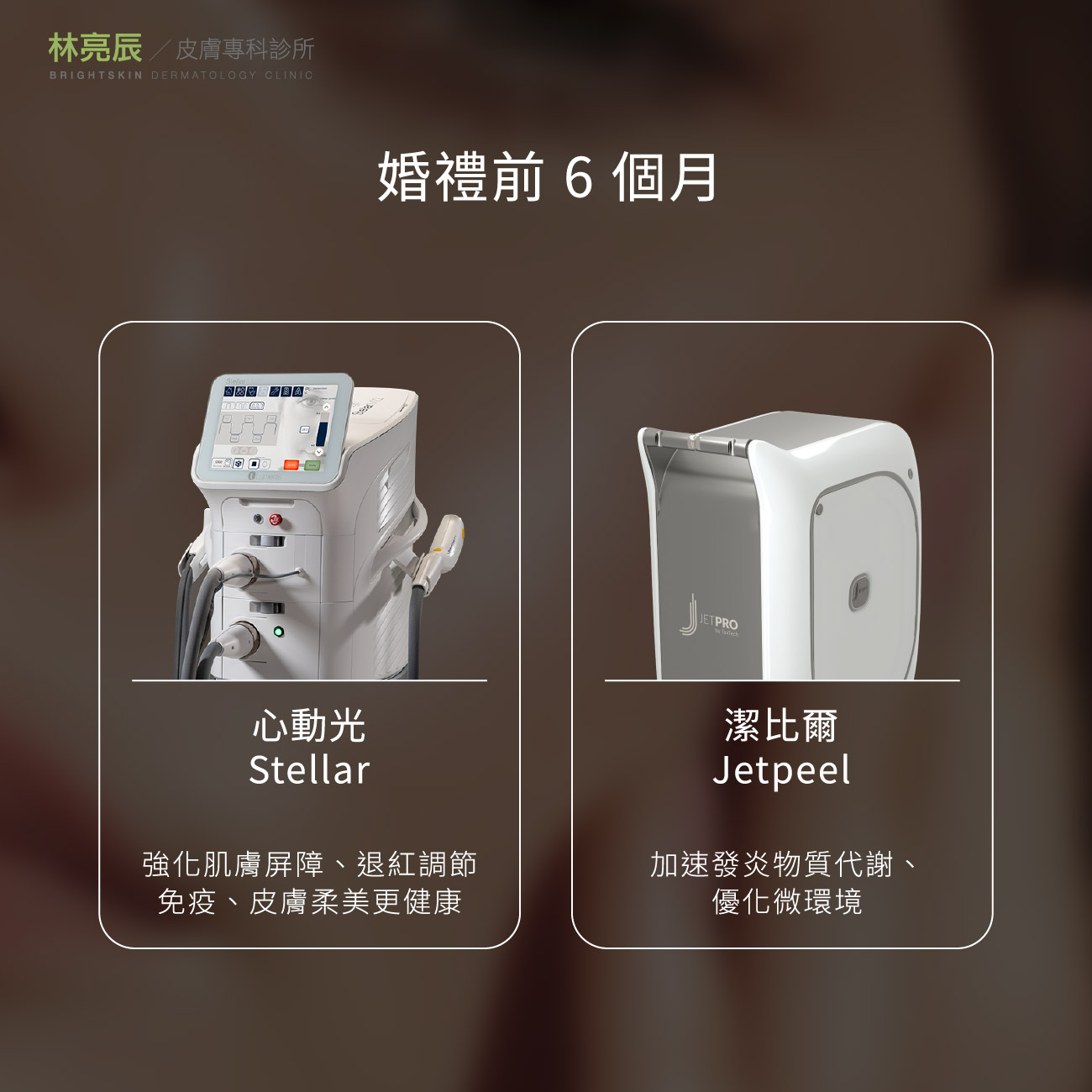 也因此,療程時程如何排、哪些能做、哪些不能做、距離婚禮多久施作,都不是臨時決定的,是一份被仔細規劃過的皮膚管理計畫。