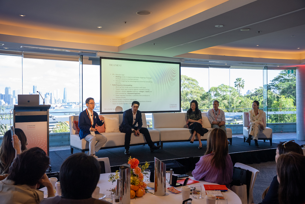 ▲ 林亮辰醫師受鉑金皮秒雷射原廠CynoSureLutronic 邀請,前往澳洲參與青萃光、鉑金皮秒雷射亞太區研討會,與來自各地的專家齊聚一堂。 作為亞洲區代共同制定治療準則之一的林亮辰醫師,此行分享主題為:「 青萃光 × 鉑金皮秒雷射 合併治療」的臨床應用策略。針對難解膚況如光老化型肝斑,如何從色素、血管、基底微環境三者同時切入,建立起更具可預期、掌控的治療軌跡。